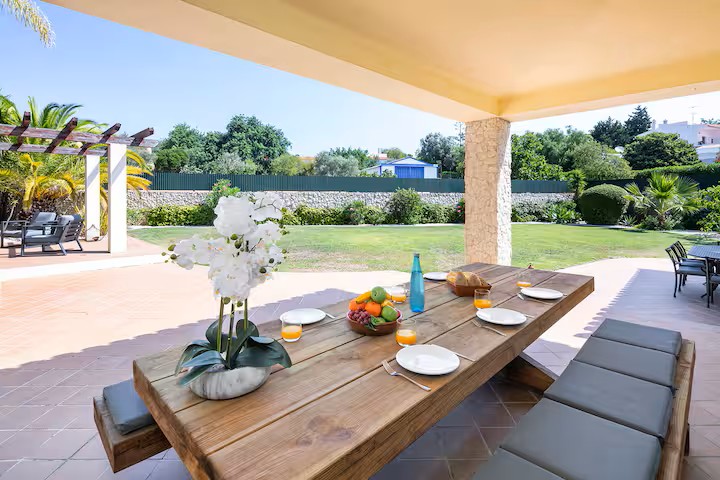 The outdoor areas are designed to make full use of the Algarve climate. Guests have access to a private swimming pool, sun terrace, landscaped garden, and barbecue facilities, providing a comfortable environment for relaxation and outdoor dining. The swimming pool is available year-round and is reserved exclusively for guests of the property.